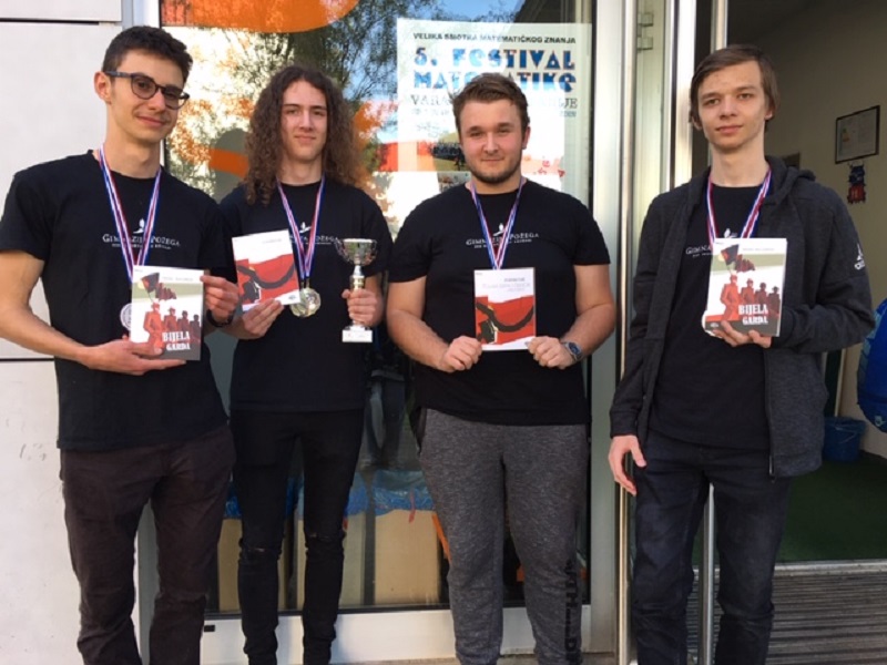 Prijavilo se više od tisuću učenika među kojima su bili naši učenici Mislav Perić(4.b), Karlo Gjogolović (4.b) Matej Blašković (3.a) i Tibor Kakuk (2.a ) koji su u ekipnom dijelu natjecanja ostvarili izvrsno 2. mjesto od ukupno 34 ekipa srednjih škola čime su postigli do sada najbolji rezultat u Varaždinu. Svaki naš učenik osvojio je po dvije medalje na Festivalu matematike!