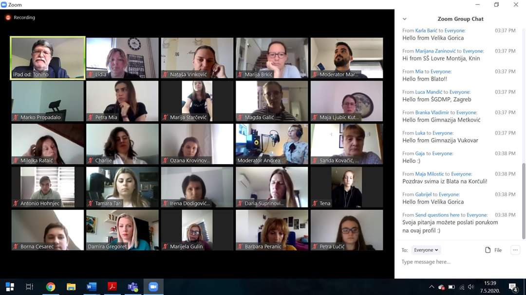 Dana 7. 5. 2020. sudjelovali smo u #EPtalks videokonferenciji #u4cetvrtkom u okviru projekta EPAS, i to na engleskom jeziku. Gostovali su zastupnik Tonino Picula i glasnogovornik Europskog parlamenta Jaume Duch Guillot, dok je moderirala Damira Gregoret s RTL Televizije.
