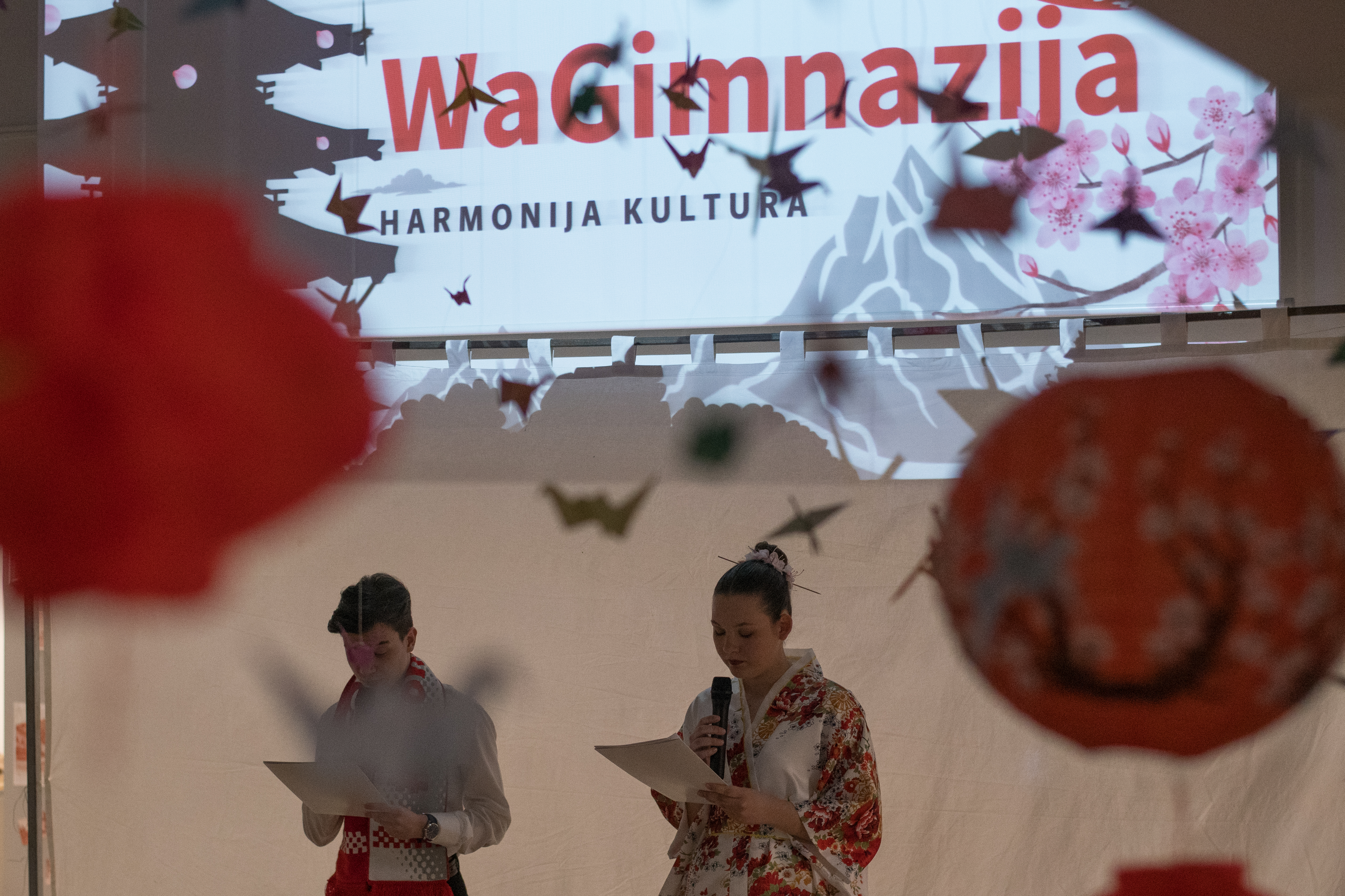 Program je otvorio školski zbor izvedbom pjesme Sakura, posvećene japanskoj trešnji. Nakon toga, učenice literarne skupine Gim-lit izvele su recital haiku poezije, inspiriran svakodnevicom školskog života, ali i izvornom japanskom tradicijom. Dramska skupina predstavila je scenski prikaz Murakamijeve sjene inspiriran djelom suvremenog japanskog književnika Harukija Murakamija koristeći tehniku kazališta sjena.